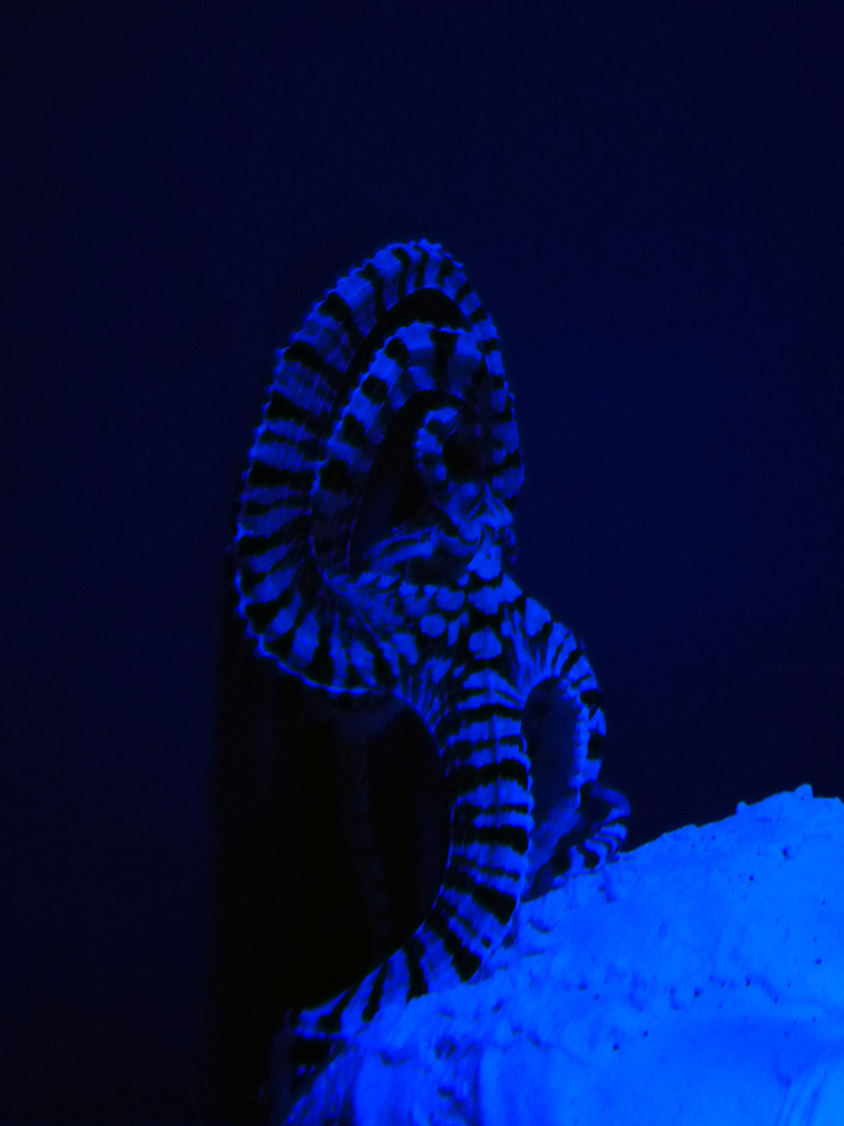 The cuttlefish though were proud to show off. Especially the appropriately-named flamboyants. Rainbow zebra stripes raced down their bodies from their mantle towards their rather stubby but no less colorful arms.
