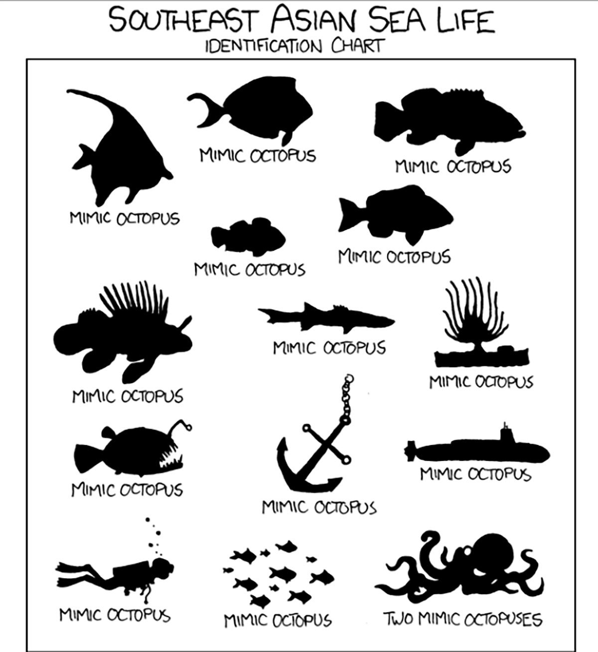 Flashing patterns can be used for communication, as well as hiding from predators andstunning potential prey, so it isn’t unreasonable to assume that cephalopods have an ocean-spanning network of spies and soldiers waiting to swarm into our cities when they flood.The most interesting things in the world are often also some of the scariest, and these ancient, plotting, shapeshifting buglers who can grow to enormous sizes are no exception. It’s no wonder to me that sailors feared the Kraken.