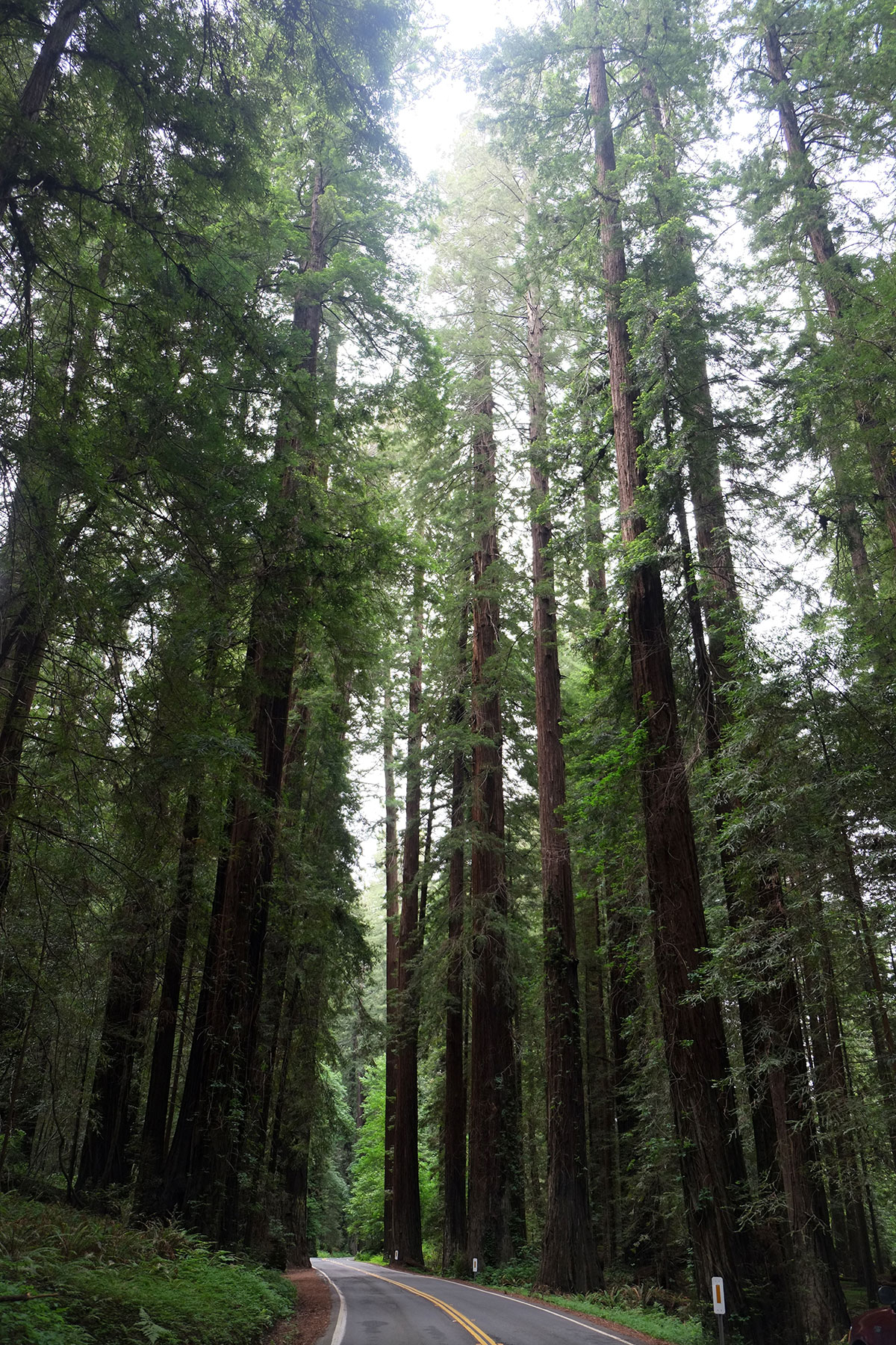 We wound our way through the last miles of Highway 1 to Leggett, where we joined Route 101, and were suddenly in the redwoods. Most of the land through which you travel is private timberland, but there are big stretches of state and local parks and reserves. 101 runs about 75 miles along the Eel River, all the way to Humboldt Bay. Near Phillipsville we abandoned 101 for the Avenue of the Giants. This was the original alignment of Route 101 until 1960, when the newer and straighter highway was built, usually on the other bank of the river; the two routes intertwine and switch sides a few times. It is a great road, with many quiet waysides and short hikes, away from the speeding trucks and heavier traffic of the highway. But we would have taken it anyway, just for the name – after a year on the road, we are suckers for all such grandiose touristic nomenclature (although we did manage to avoid the Trees of Mystery further north).