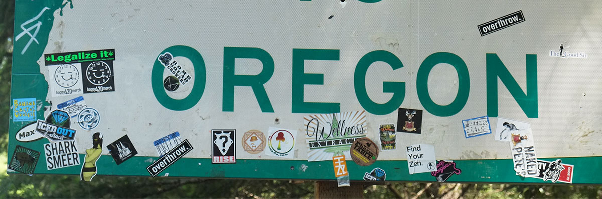 We noticed the stickers attached to the bottom of the sign, which seemed to reflect the major pre-occupations of the local populace: the secessionist State of Jefferson movement, and the marijuana culture which had sprung up in our absence, as recreational use was legalized on October 1, 2015.
