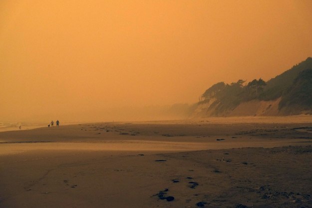 Since hiking in the woods was off the agenda, we went back to the beach, where we saw what was following the wind:  a huge cloud of smoke moving in from the east.We knew there had been some fires east of Salem in the Cascades, but being out of cell and radio range, we had no idea that all of these fires had been supercharged by the unusual winds from across the Cascades the night before.  We enjoyed the blue sky, not knowing that it was the last one we would see for weeks.