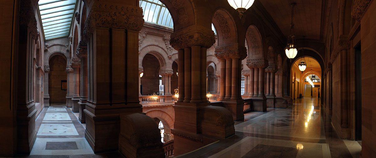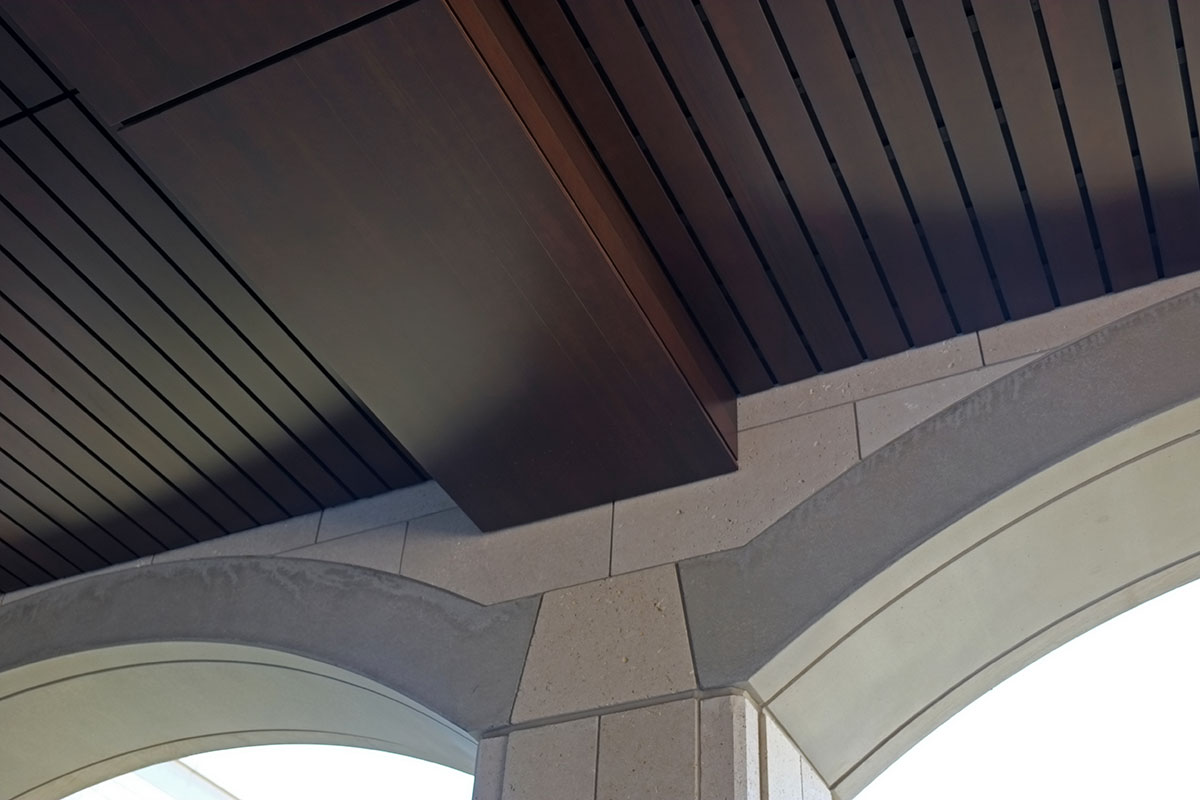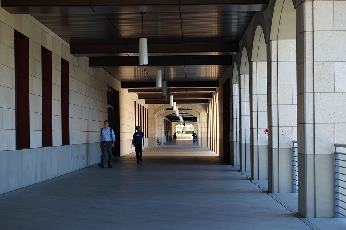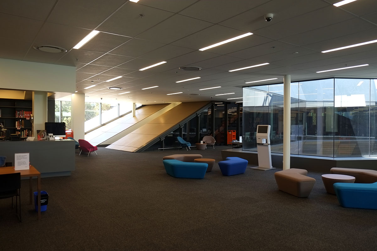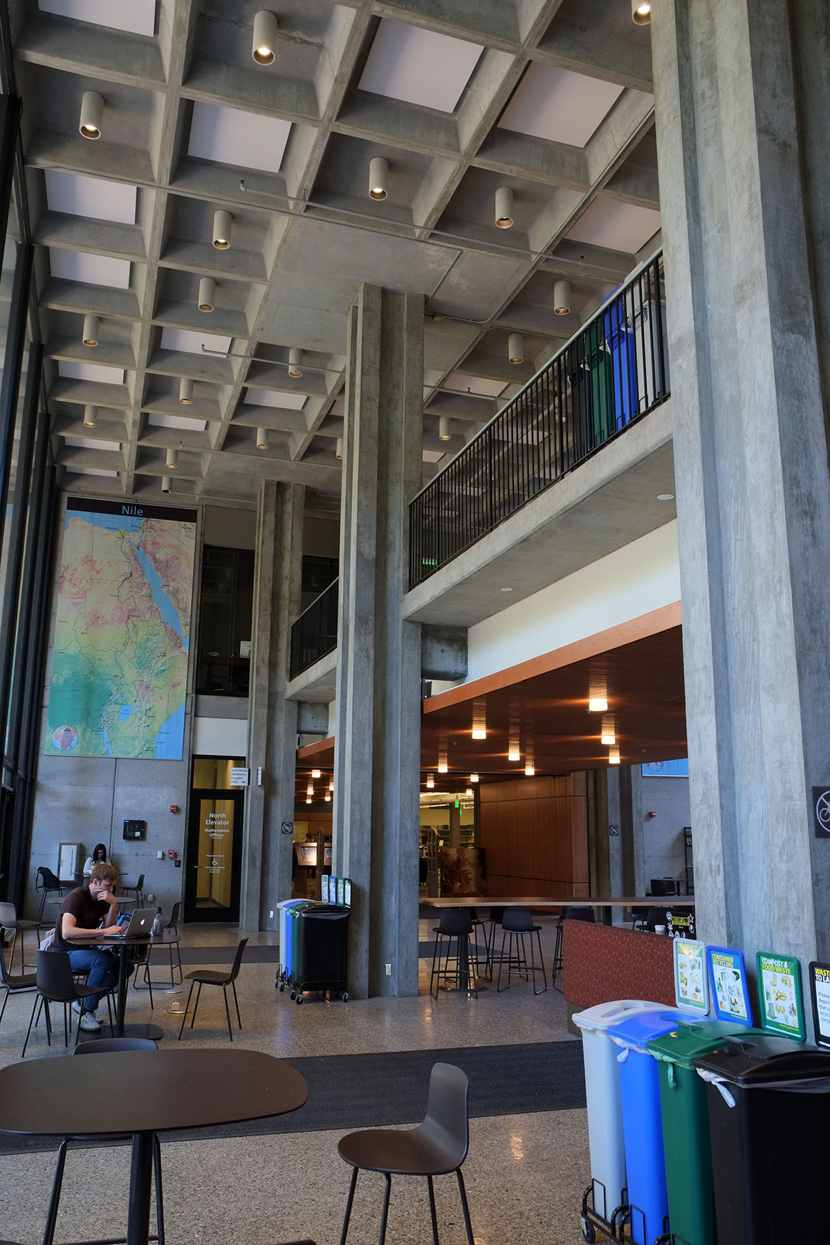 The lighting is a combination of coffered indirect lighting in the galleries, with windows poking through the rear façade into the corridors.