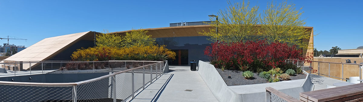 Taking the big stair to the third level, the museum expands out even more. There is a sculpture terrace with a living wall across the rear of the building,