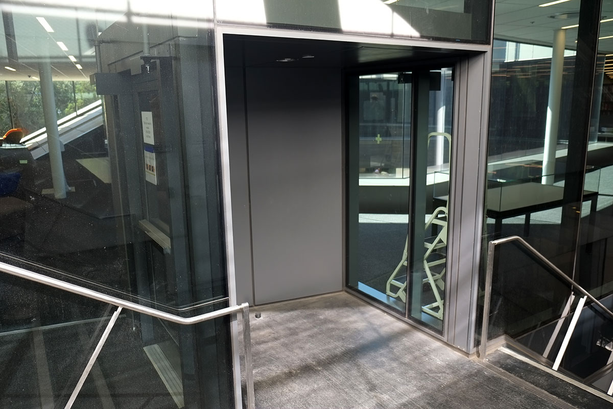 At the fifth level there is a glass bridge out the blob, which leads across to a restaurant pavilion and much larger sculpture terrace.