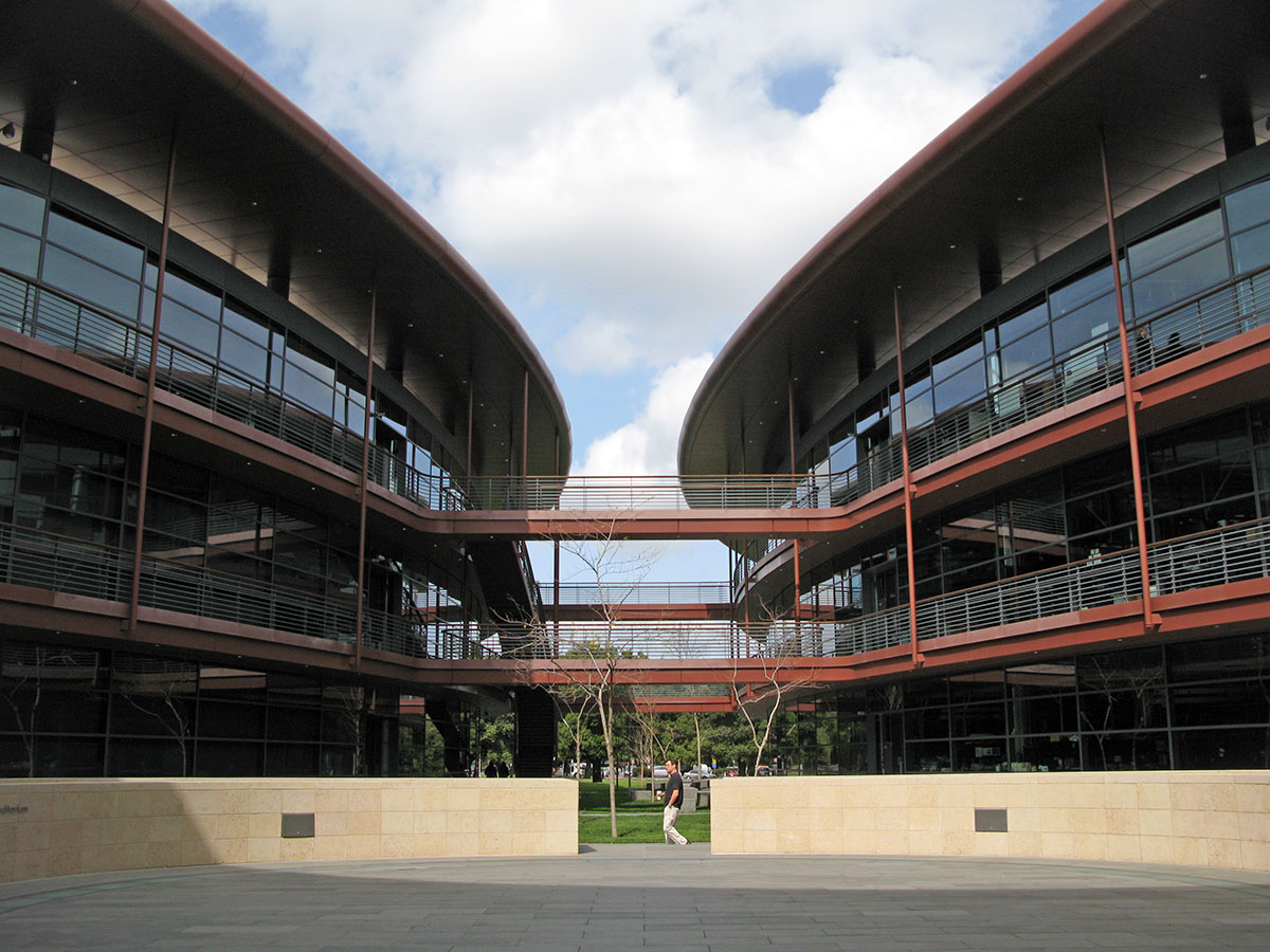 While the cultural circumstances of SFMOMA resemble those of SAM, the site conditions resemble those of the Guggenheim. Both original museums were small, iconic, and with a central cylindrical piece. In both cases, the addition had to be a wall rising behind the original museum; with the Guggenheim, this was famously likened to the tank behind the toilet bowl. At SFMOMA, the front is on a major axis from Yerba Buena Gardens across the street by the convention center, originally forming a composition with the terra cotta (now Pacific Bell) tower behind. The contrast between the red brick and the white tower