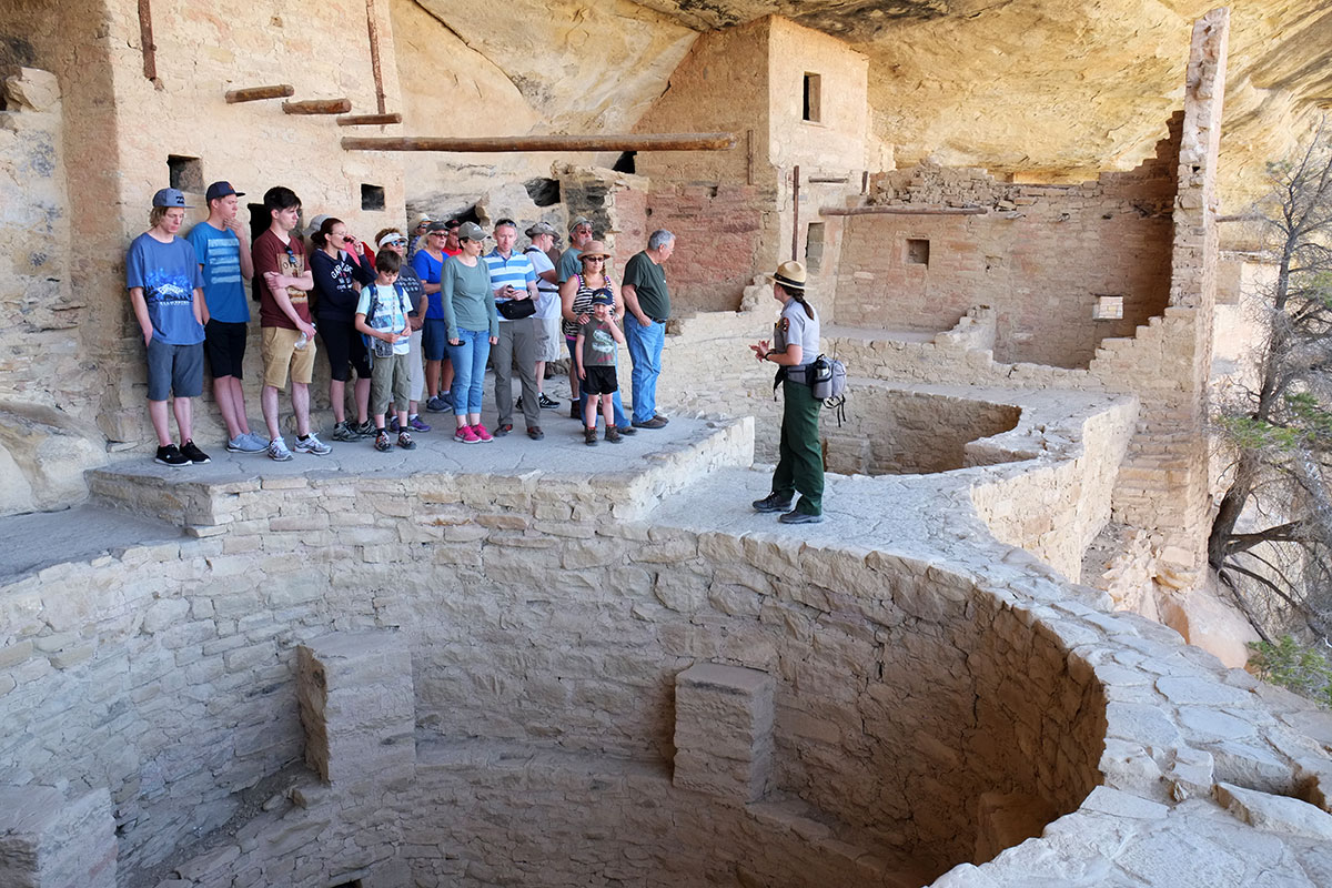 The group is standing beside one of the round rooms in the plaza – entered from above, probably better heated due to its shape and location, and perhaps used for daily activities.