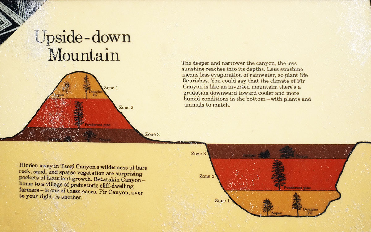 As usual, the Park Service had an excellent sign explaining this – showing how the climate zones in a canyon were inverted from those seen on a mountainside, with the cooler weather, alpine vegetation at the bottom.