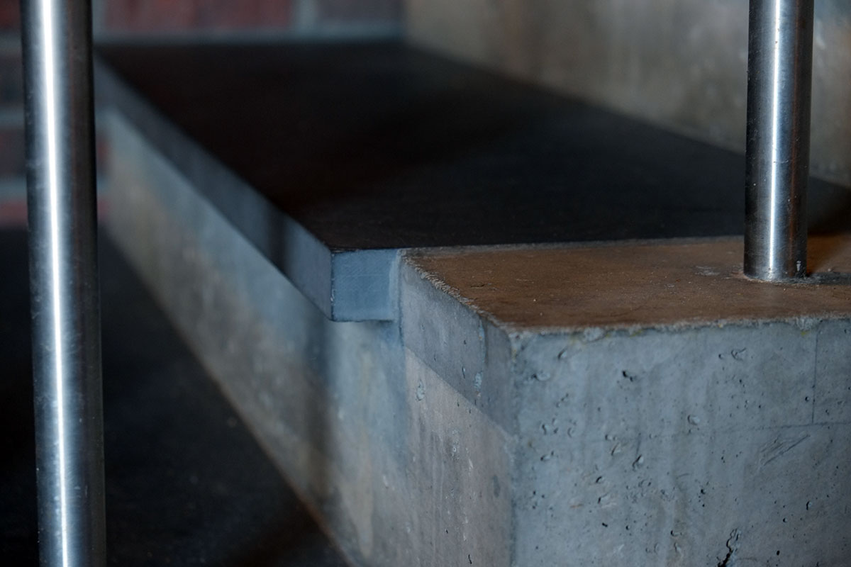 Units have their front doors on these streets, with a small yard setback for privacy, and driveways long enough for one car.