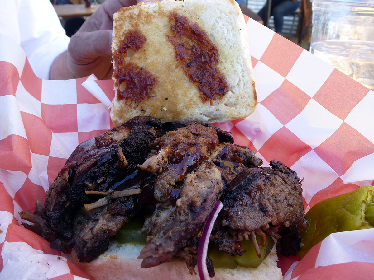 When I first floated the idea of this trip to Greta, I pointed out a number of aspects I thought she’d find appealing, but the one that cinched the deal for her was the plan to eat barbecue all across the South. Greta’s interest in good food has expanded incredibly in the past couple of years, so eating new and interesting food was one of our main goals from the start. Given that orientation, it didn’t make much sense for us to go to a lot of trouble cooking for ourselves. About the third day out we came to a fundamental distinction: there were meals which were an end in themselves (cooked by somebody else) and there were survival meals, which we often made ourselves. On average, we’d aim for one good meal and two sustenance meals per day.