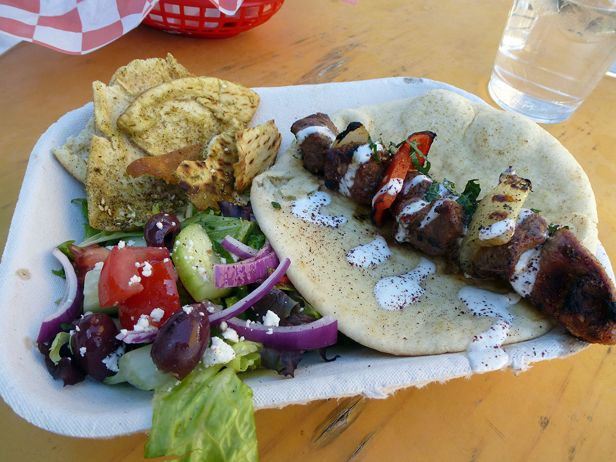 This may not be a problem when you’re at home and maybe over-eat out once a week, but when you’re eating in restaurants almost every day, it’s definitely a problem. We could have followed the Zimmer girl protocol of splitting entrees, but we always wanted to try out more than one thing on the menu. So we’d order two meals, and when the food arrived, we’d do a quick assessment of what half would work best as leftovers, and what half should be eaten immediately. We always had an ice chest in the truck, so we’d pack things away, and then eat them for lunch or dinner the next day. We got to eat a wide assortment of great food (Greta and I always shared our dishes), and we pretty much cut our restaurant budget in half by doing this. Having no microwave or toaster oven, we got to be really good at reheating things in a frying pan. Greta is thinking about writing a diet book, called Leftovers Keep Me Skinny.