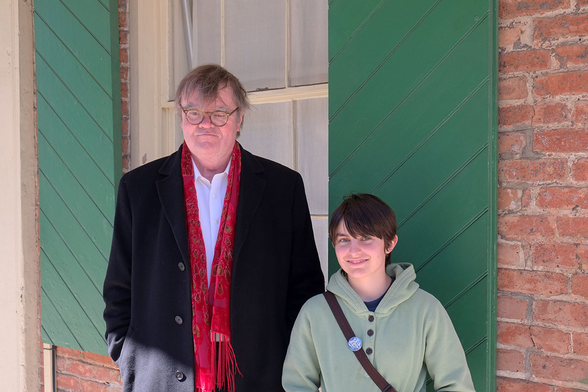 DSCF3455We saw Garrison Keillor at party last weekend, but didn’t talk to him, following a general principle of leaving celebrities alone unless you really have something to say.  The next day I regretted this, as it occurred to me that while I may not have had much to contribute beyond the appreciation of a fan, he might have enjoyed talking to Greta, the apprentice writer.  So today when we turned onto Chartres St. in the French Quarter and saw him leaving his hotel, I shamelessly buttonholed him and introduced him to Greta.