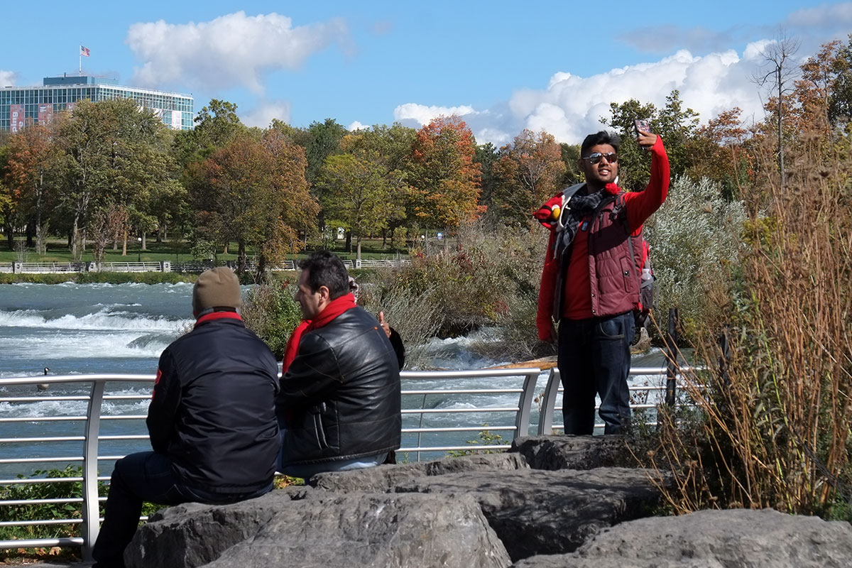 But in recompense, we came across something we’ve never seen before, a true selfie artist. Whereas most selfie-takers are content to register their presence, perhaps with a smile, this young man took a series of selfies, each with a different gesture, or expression.