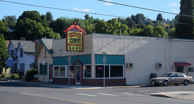 We spent a little time looking for food in the Palouse – very small towns without many options – and in Colfax we came across Eddy’s Chinese American.  Despite Tom’s assurance that it was quite good (later independently confirmed by Jug when we returned to Coupeville), its Yelp rating of one star gave us pause.  Both Tom and Jug told us that there used to be another Chinese restaurant in Colfax – Pete’s.