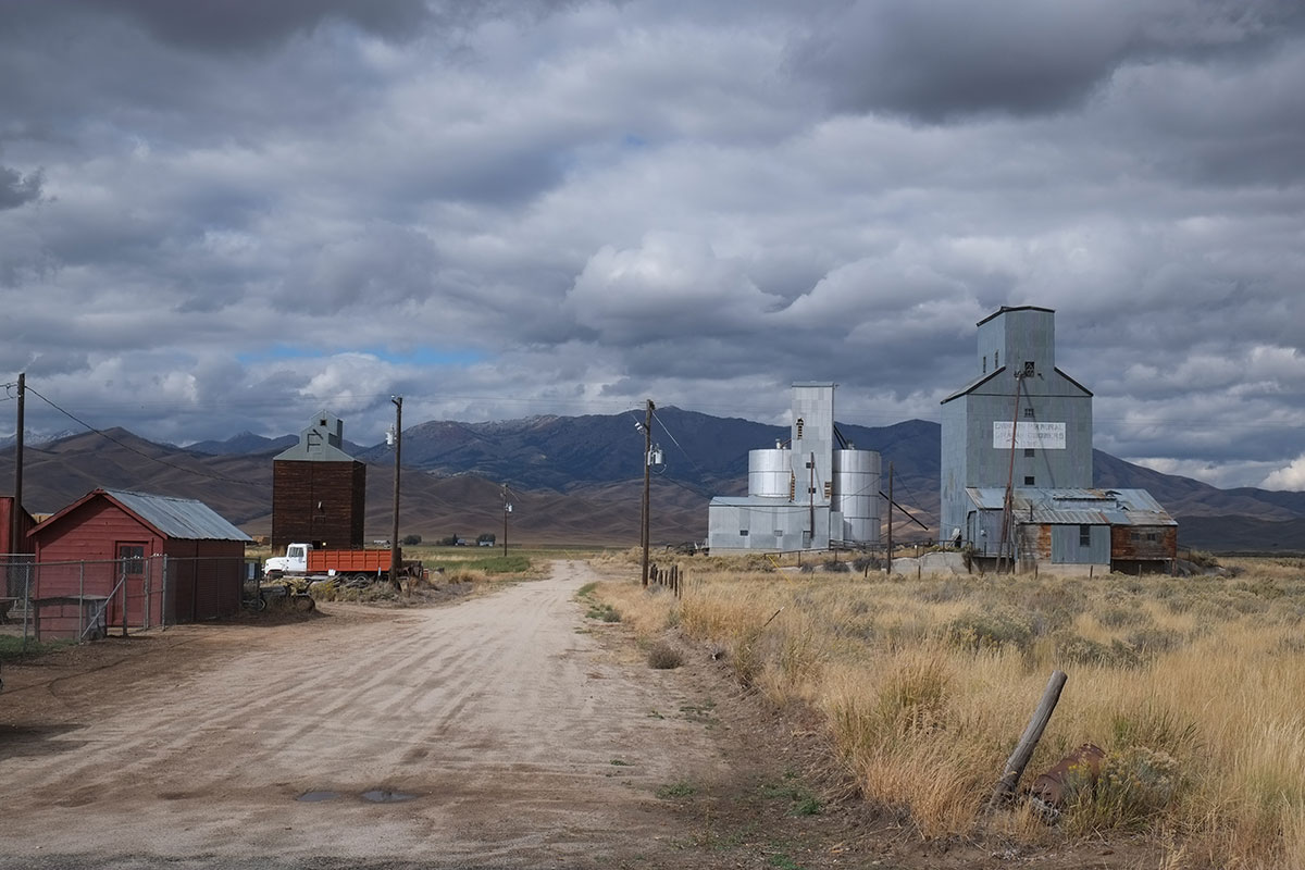 We stopped in Ontario, a railroad town on the Idaho border, and found a great taqueria, Tacos Mi Ranchito, on the main street, serving big meals to a mix of Latino and Anglo ranchers. We got onto I-84, and bypassed Boise, as we had to cover some miles to get to Yellowstone for our campground reservation the next day. At Mountain Home we got off the highway and back onto 20, which at this point is called the Sun Valley Highway, climbing up out of the Snake River valley to a higher elevation plateau at the base of the mountains. Between Hill City and Fairfield we passed the greatest collection of grain elevators I’ve ever seen, and the rest of the afternoon was spent speeding across this vast, flat, dry ranchland, with the mountains a few miles to the north.