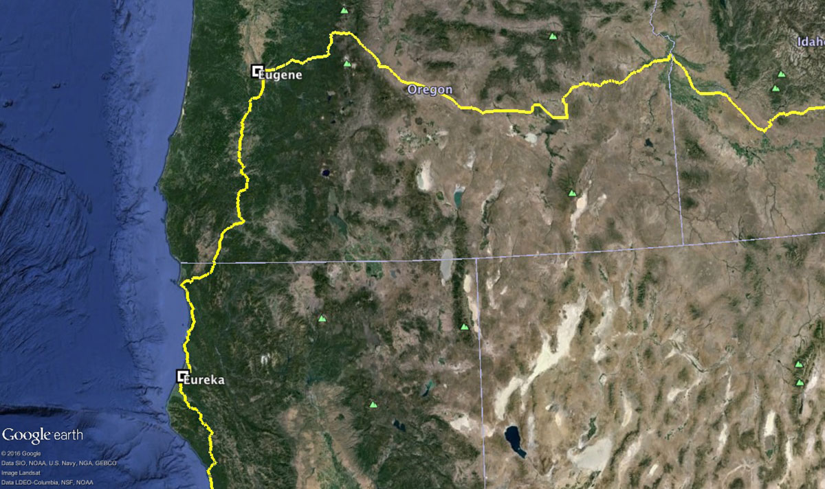 September 15: First day. Our first day of the big trip had all the confusion and tumult that often accompany any new undertaking. We had spent the prior week in Eugene preparing – fixing up the trailer, buying gear and clothes, finalizing the bureaucratic issues for the year, and having a last-minute root canal. We thought we’d hit the road early, but instead we made one last REI run and finished packing everything up. We said goodbye to Linda, and rolled out of town at 3:00. As we drove across Springfield, Greta looked at me and exclaimed, Holy crap, we’re really doing this.