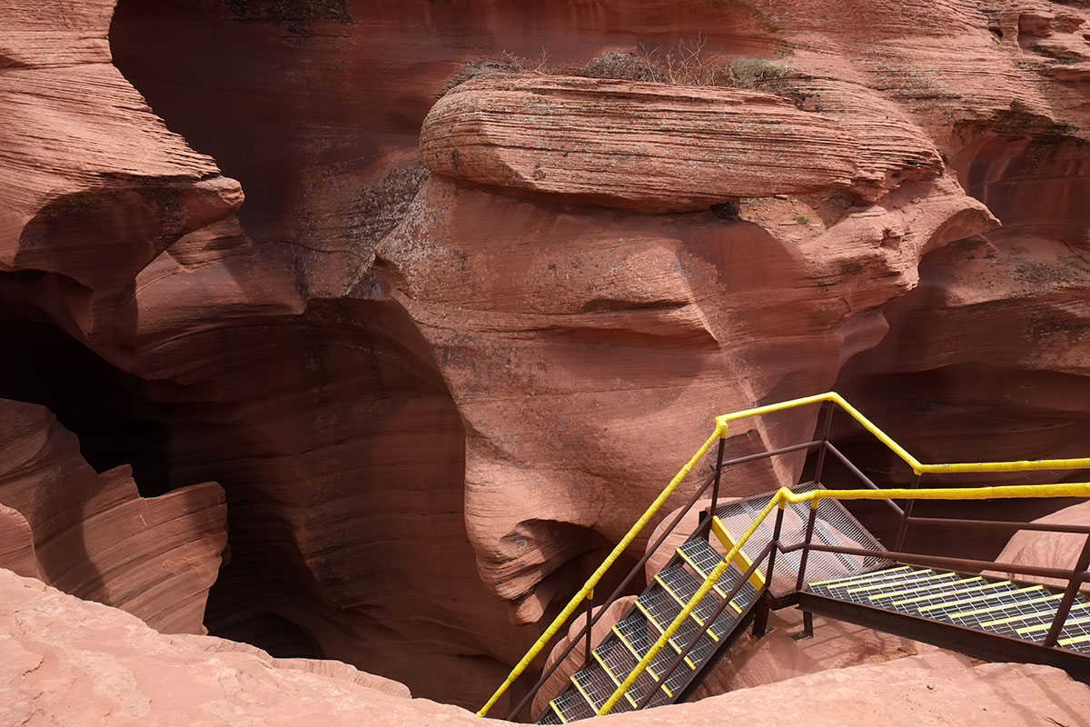 While the upper canyon is easily accessible, the lower canyon requires climbing down stairs, some tight squeezes, and a little rock scrambling. They are apparently comparable visually, but the greater difficulty in accessing the lower canyon keeps the crowds down.